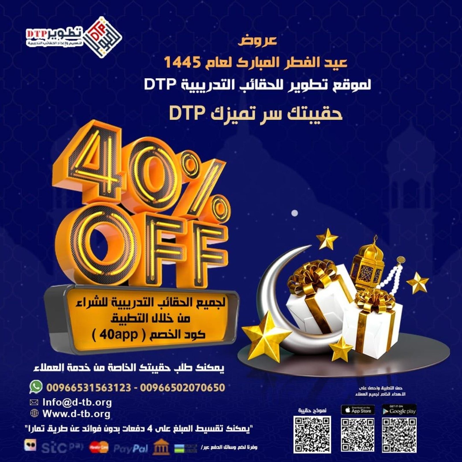 🌟 *عروض عيد الفطر المبارك لعام 1445* 🎉 *لموقع تطوير الحقائب التدريبية DTB* 🎁 *خصم 40% لجميع الحقائب التدريبية للشراء من خلال التطبيق* كود الخصم ( 40app ) 📍 *انتقِ حقيبتك* ♻️ *+ 3000 حقيبة* 📔 ↩️ *11قسم* 📂 🔄 *100 تخصص تدريبي* *لتحميل التطبيق للاندرويد*👇 https://play.google.com/store/apps/details?id=com.dtborg.app&pli=1 *لتحميل التطبيق للآبل* 👇 https://apps.apple.com/us/app/%D8%AA%D8%B7%D9%88%D9%8A%D8%B1-dtp/id6470309424 *إنضم لقناة التليجرام لمتابعة أقوى العروض* https://t.me/+yb4Sb7VyK6AwZmVk *لمزيد من الاستفسار واتساب انقر على الرابط لينتقل مباشرة :* 👇🏻 https://api.whatsapp.com/send?phone=966502070650 https://api.whatsapp.com/send?phone=966531563123 00966502070650📲 00966531563123📲 📧 Info@d-tb.org 🌐 Www.d-tb.org 📍 *تواصل معنا ونحن في خدمتكم* *بثقتكم نتبادل النجاح💫*
