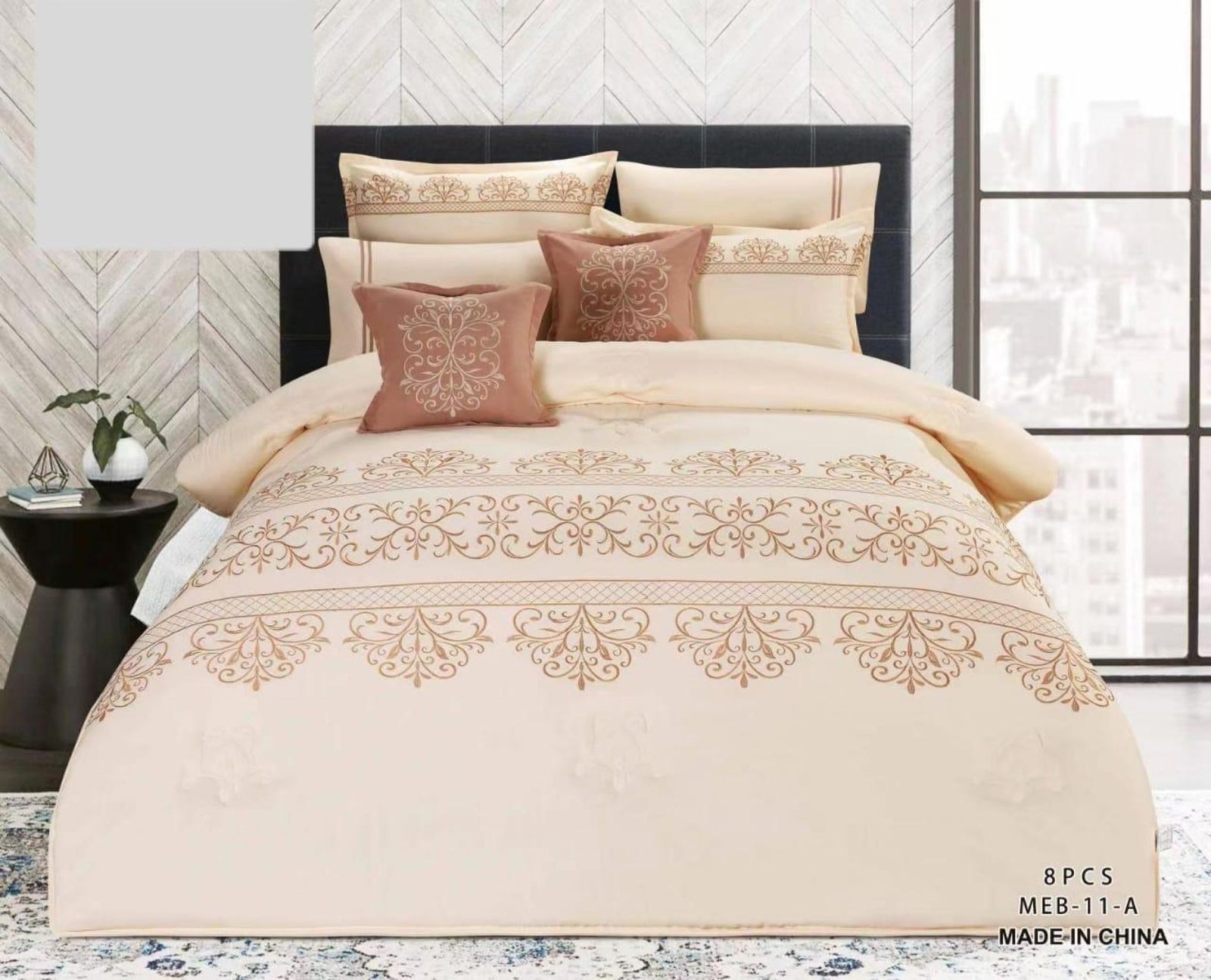 جديد معنادائماً⚡️ أفضل التصميم وأقل الأسعار مفرش 8قطع نفرين حشوة وسط مخيطة صيفي ناعم كامل سادة مطرز خامة مكروفايبر 1 لحاف نفرين 220*240سم 1شرشف مغاط 200*200سم 4 تلبيس مخده 50*75سم 2 تلبيس خدادية 45*45سم السعر ((195ريال ))) صناعة صيني 🌲يوجد لدينا شحن لجميع مناطق المملكة العربية السعودية 🌹يوجد لدينا توصيل داخل الرياض 40ريال بنفس اليوم ان شاء الله
